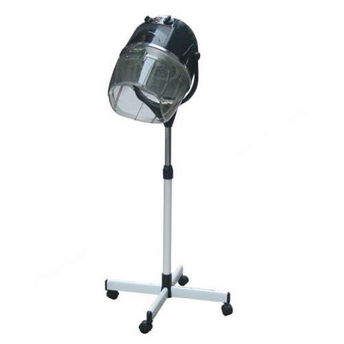 This portable hair dryer is lightweight and economical, yet it's loaded with professional functions and features. Dries hair fast; leaving it smooth, silky, soft and frizz-free. May also be used to set perms or other hair treatments. Premium 1,000-watt, dual-looped, stainless-steel heating element and multi-bladed fan provide for fast, quiet, efficient and even heat. Hood is made from durable tinted acrylic and is generously sized (10-1/2" x 9-1/2" opening) to accommodate even the largest rollers. Hood features a hinged front visor for convenience. Spring-loaded pedestal base allows dryer's height to be easily adjusted and locked in place via the tension knob. Bonnet swivels on the base and tilts up and down. Height adjusts from 50" to 64" (measured from floor to top of hood when hood is horizontal, hood opening will be lower when tilted down for normal use). Unit rolls on a 29" diameter base with five smooth-rolling, swivel casters (minor assembly of base required). Timer can be set up to sixty (60) minutes timer and the temperature control is adjustable up to 165-degrees Fahrenheit. Includes dryer with stand, grounded power cord (120 volt, 7 feet long) and instructions.